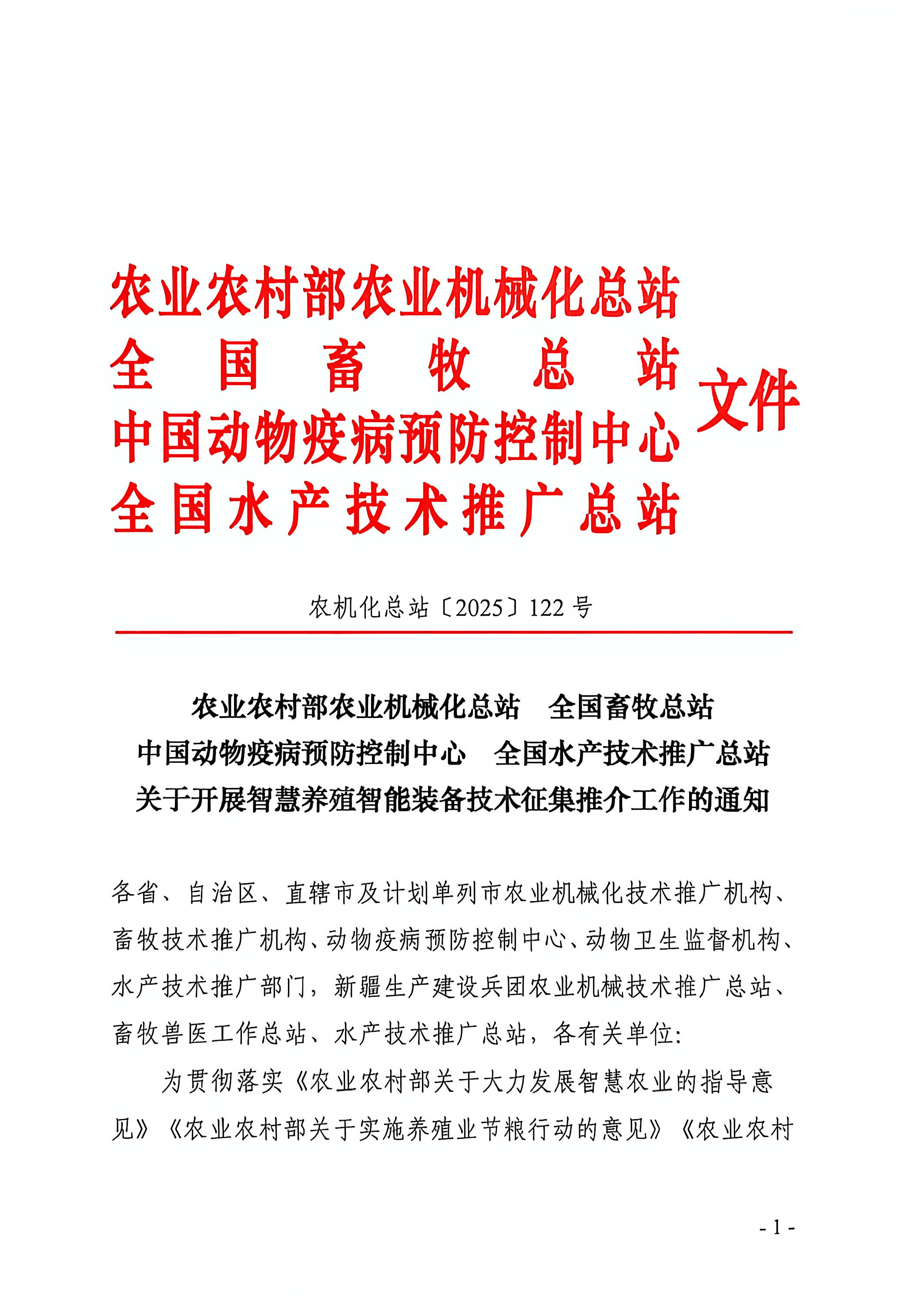 关于开展智慧养殖智能装备技术征集推介工作的通知-ag旗舰厅