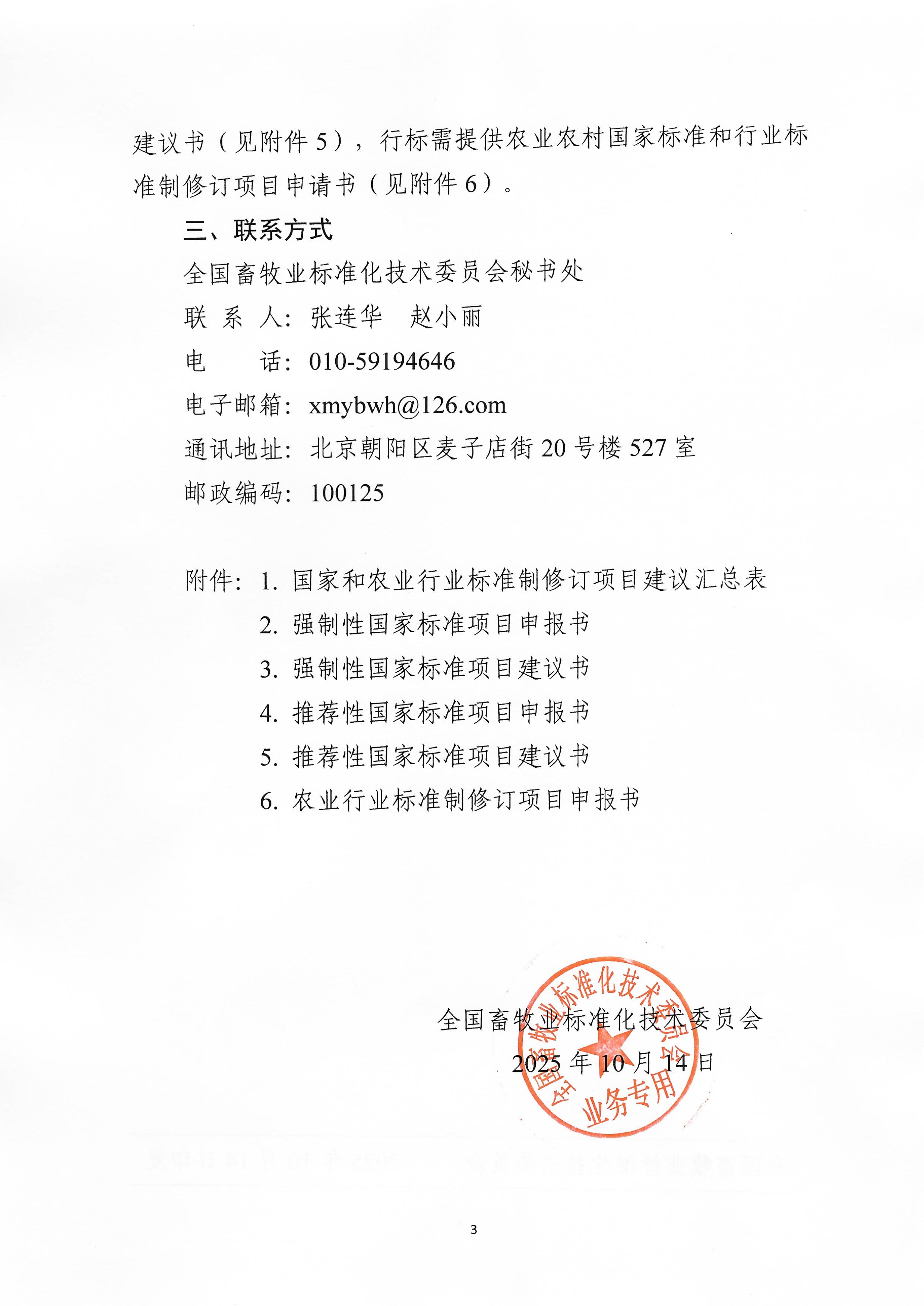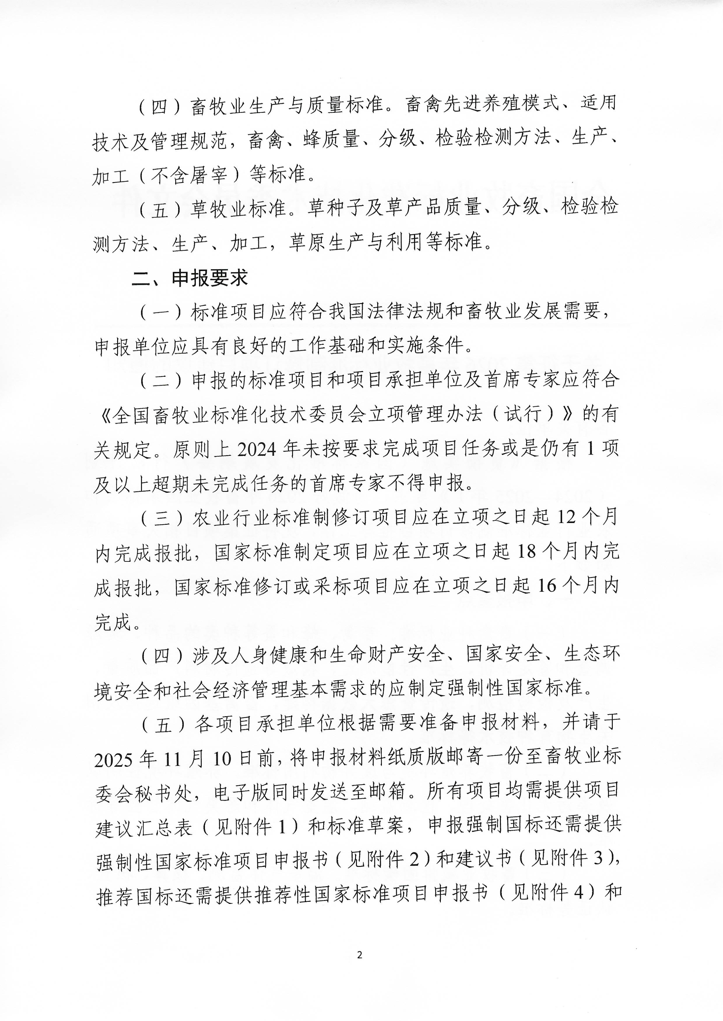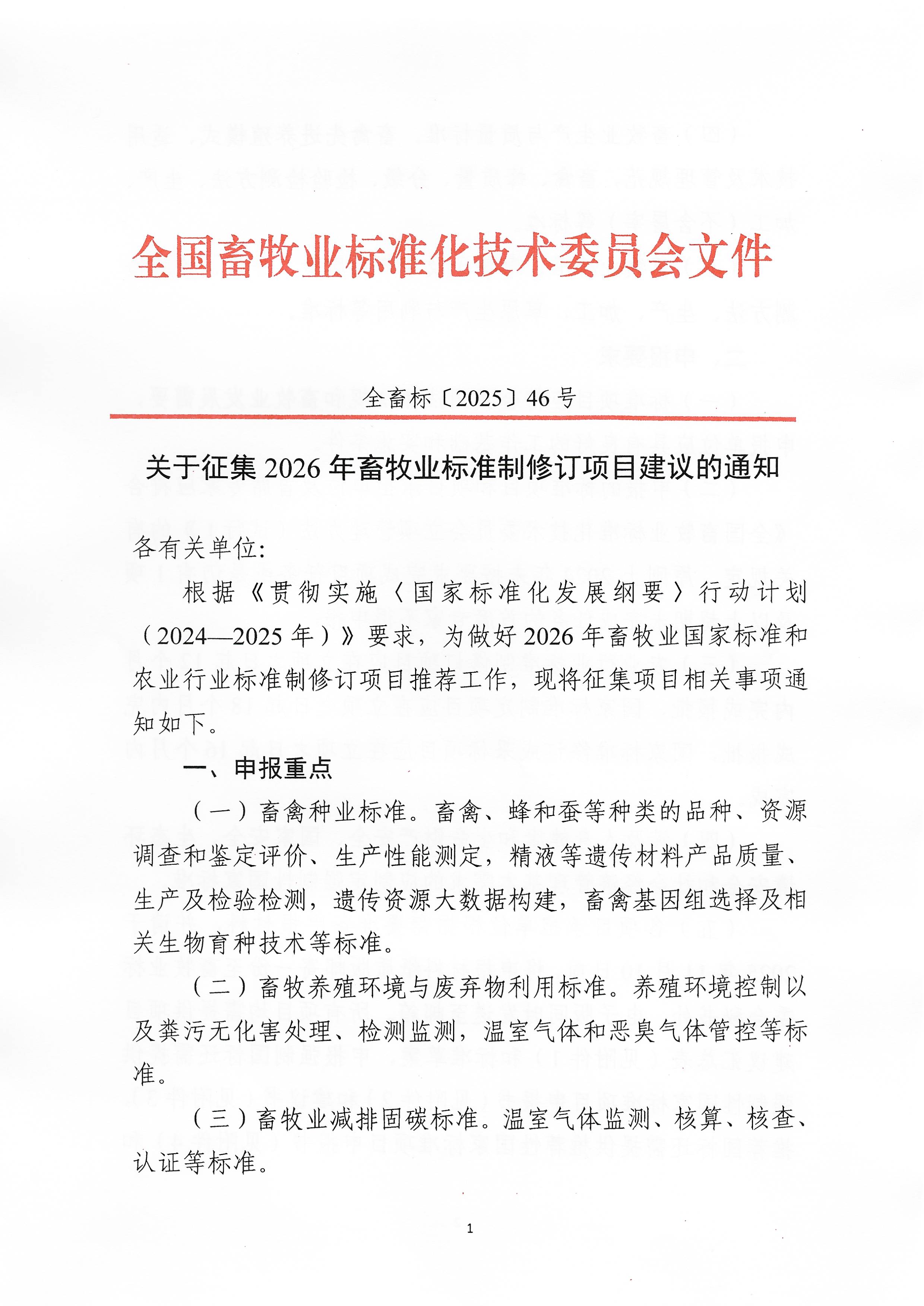 关于征集2026年畜牧业标准制修订项目立项建议的通知-ag旗舰厅