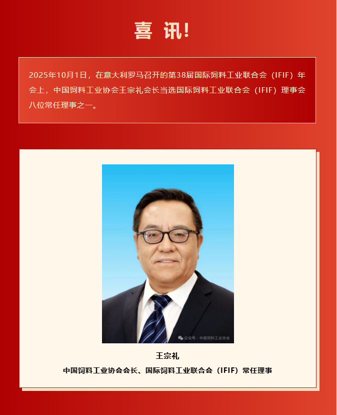 喜讯!热烈祝贺王宗礼会长当选国际饲料工业联合会(ifif)常任理事-ag旗舰厅