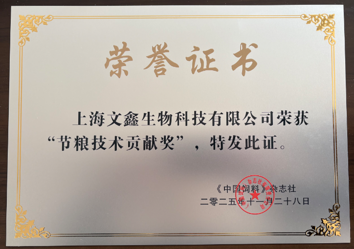 近日,上海文鑫生物科技有限公司凭借餐厨废弃物资源化利用技术的卓越实践与节粮领域的突出贡献,成功斩获中国饲料杂志社颁发的“节粮技术贡献奖”!这一荣誉不仅是对上海文鑫核心工艺价值的权威认可,更是对公司以“循环利用破局浪费,科技赋能高效节粮”理念的高度肯定。
