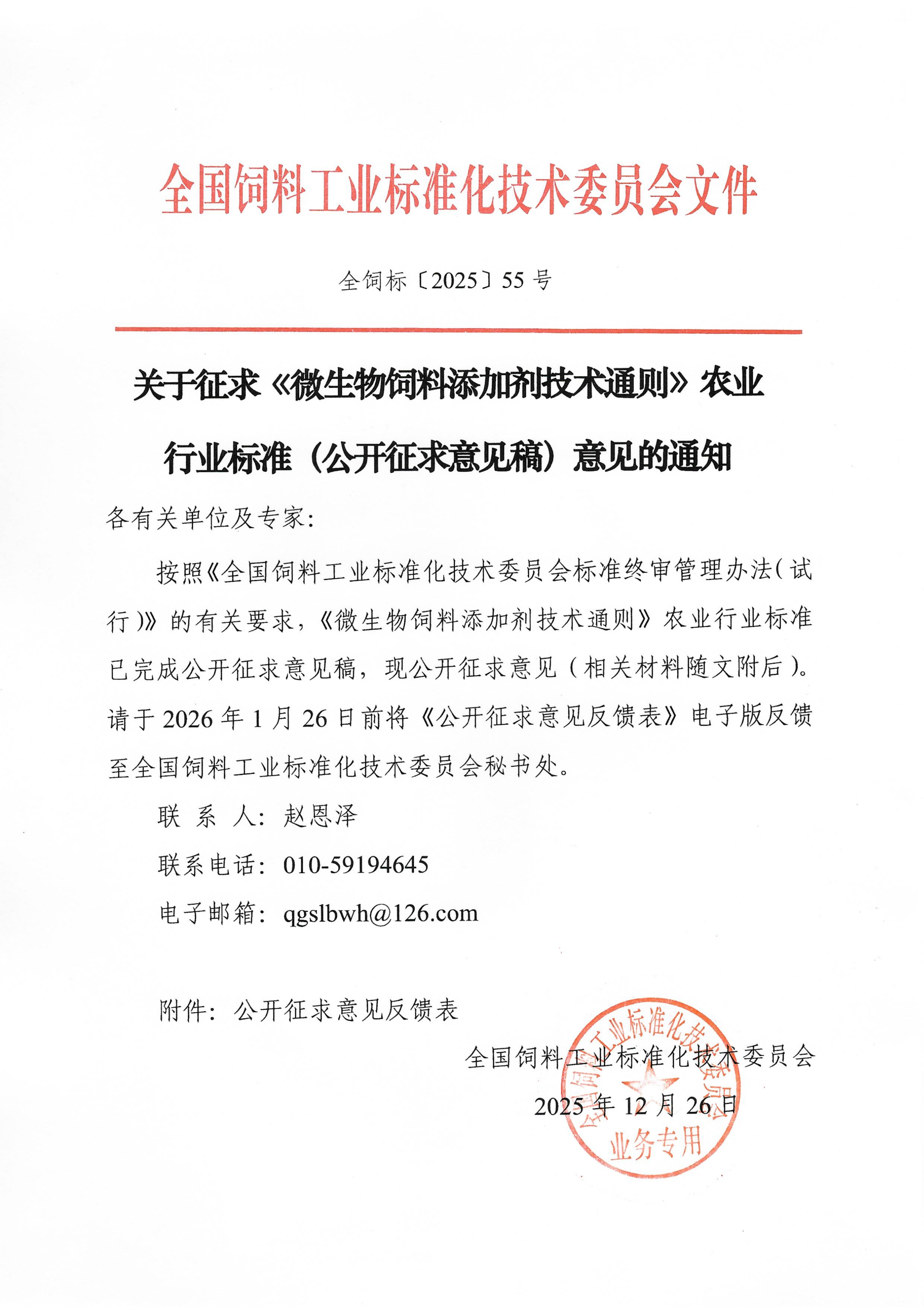 关于征求《微生物饲料添加剂技术通则》农业行业标准(公开征求意见稿)意见的通知-ag旗舰厅