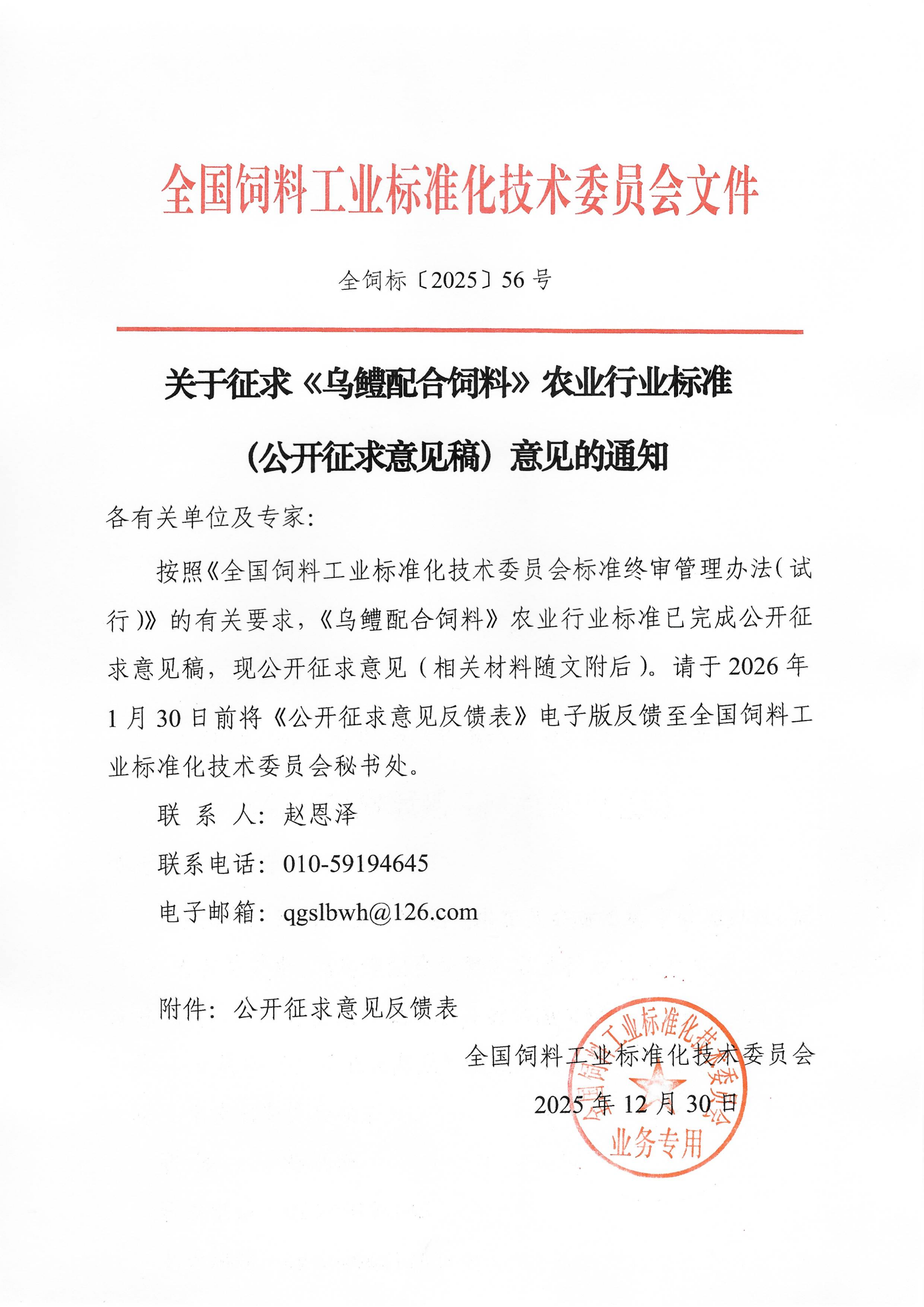 关于征求《乌鳢配合饲料》农业行业标准(公开征求意见稿)意见的通知-ag旗舰厅