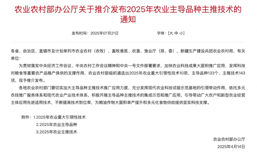 2025年4月,农业农村部推介发布2025年农业主导品种和主推技术。由全国畜牧总站推荐,牧原食品股份有限公司的“密闭式畜禽圈舍排出空气除臭控氨技术”,成功入选2025年农业主推技术。