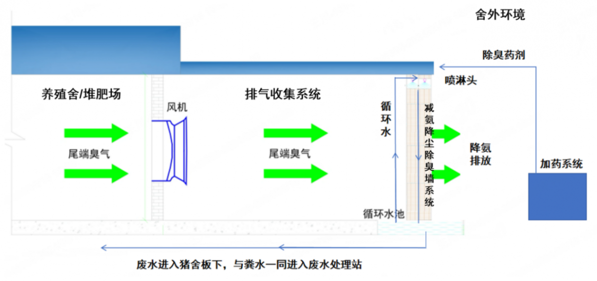 2.密闭式畜禽圈舍排出空气除臭控氨技术工艺流程