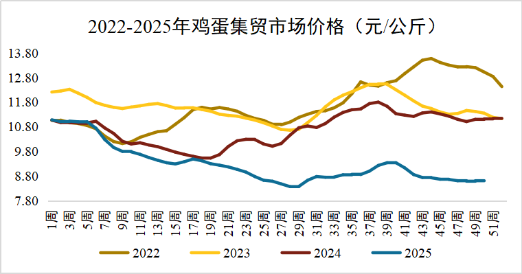 鸡蛋价格由涨转跌:全国鸡蛋平均价格8.60元/公斤,比前一周下跌0.1%,同比下跌22.7%。河北、辽宁等10个主产省份鸡蛋价格7.19元/公斤,比前一周上涨0.1%,同比下跌28.7%。