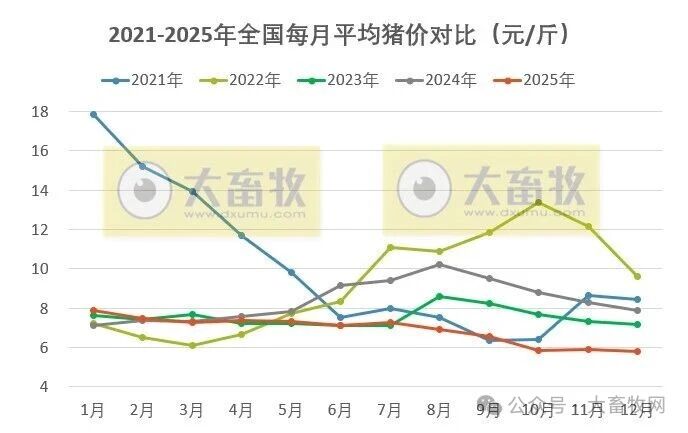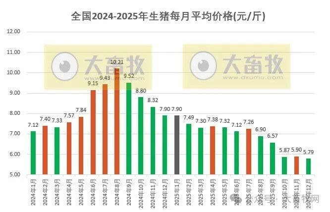 12月全国平均猪价全年最低价,连续3个月跌破6元。