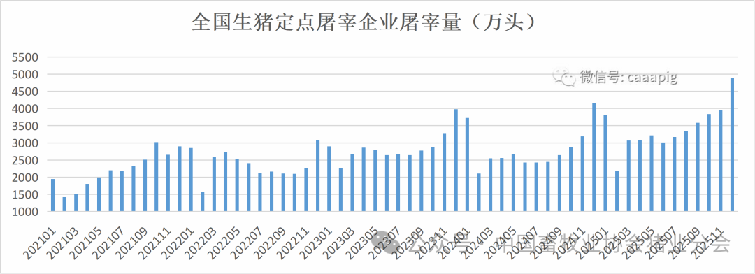 4、2025年12月份生猪定点屠宰企业屠宰量4891万头,环比增长23.6%,同比增长11.2%。
