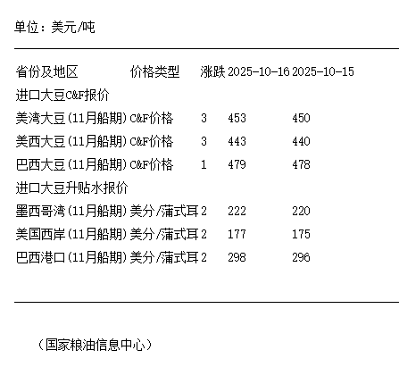 10月16日进口大豆到国内港口c&f及升贴水报价-ag旗舰厅