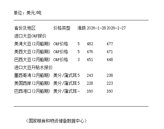 1月28日进口大豆到国内港口c&f及升贴水报价-ag旗舰厅