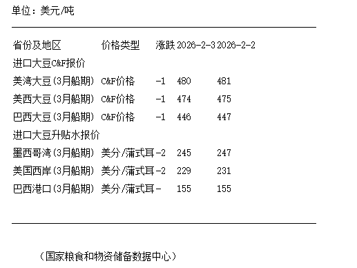 2月3日进口大豆到国内港口c&f及升贴水报价-ag旗舰厅