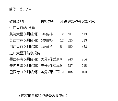 3月9日进口大豆到国内港口c&f及升贴水报价-ag旗舰厅